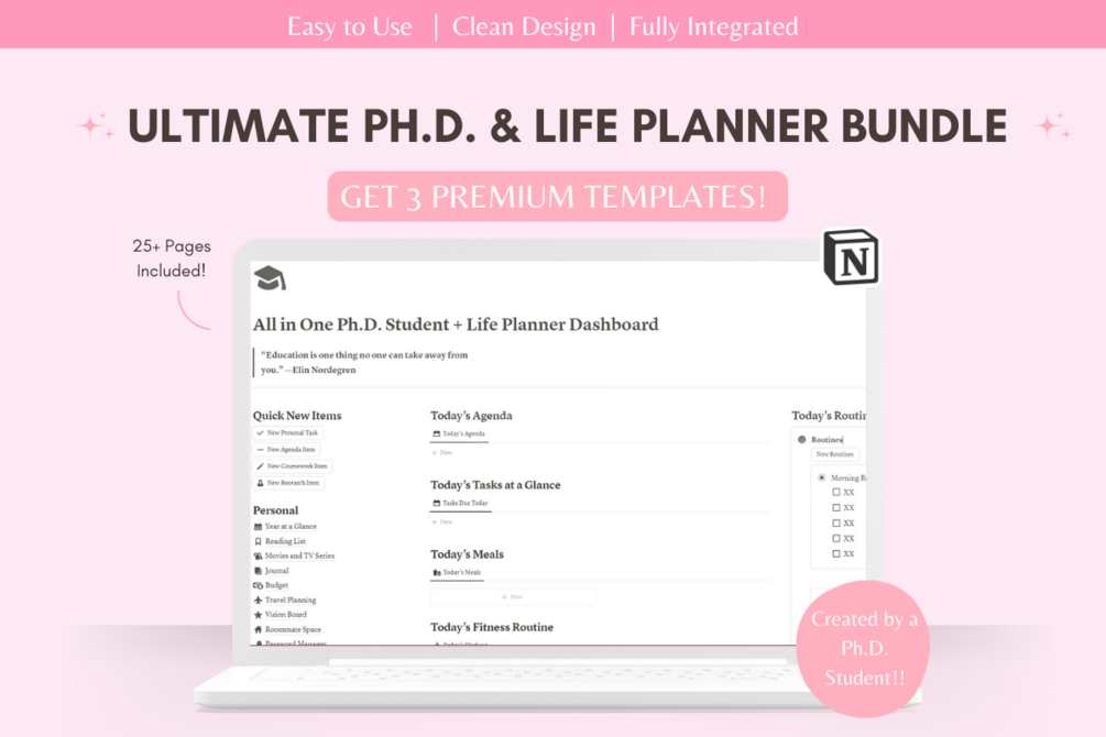 Ultimate Ph.D. Student Notion Template Bundle - Research Notebook Template, Life Planner, Dissertation Planner & More!